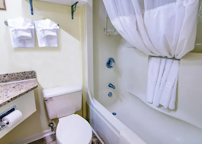 The 3-star Palms Resort Myrtle Beach, located just 0.7 km from the Captain Hooks Adventure Golf and 25 minutes' walk from the mini-Disney-like Broadway at the Beach Outdoor Mall, features an indoor pool for guests to take a dip in. Staying here you can use Wi-Fi throughout the property and complimentary private parking on site.